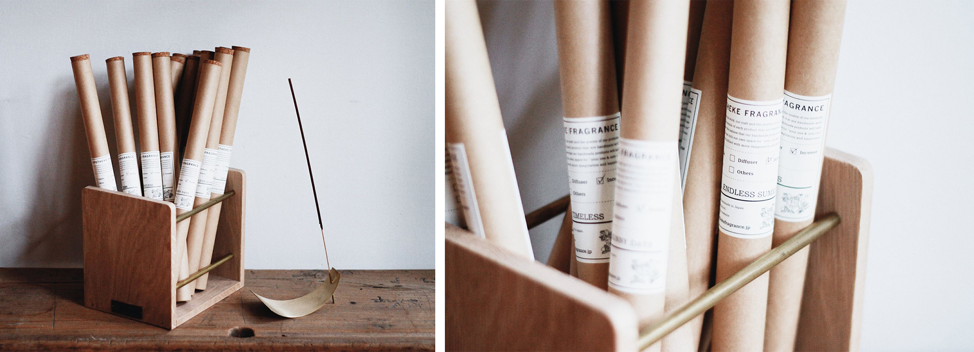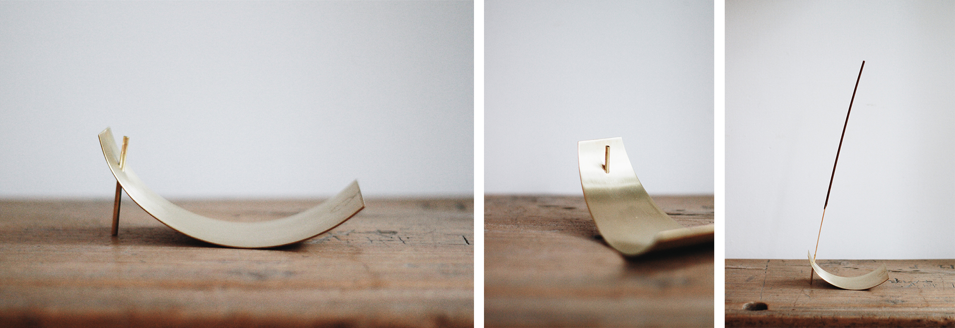 點線香時,當然也要給它一把優雅的椅子請線香坐,此款黃銅線香座,生產及設計皆來自日本雕塑家牧野永美子小姐,手工製作,沒有多餘的裝飾,讓線香灰燼落於流暢的線條與曲面上。