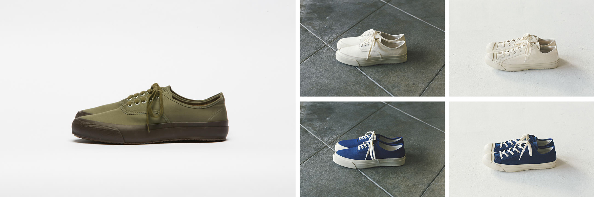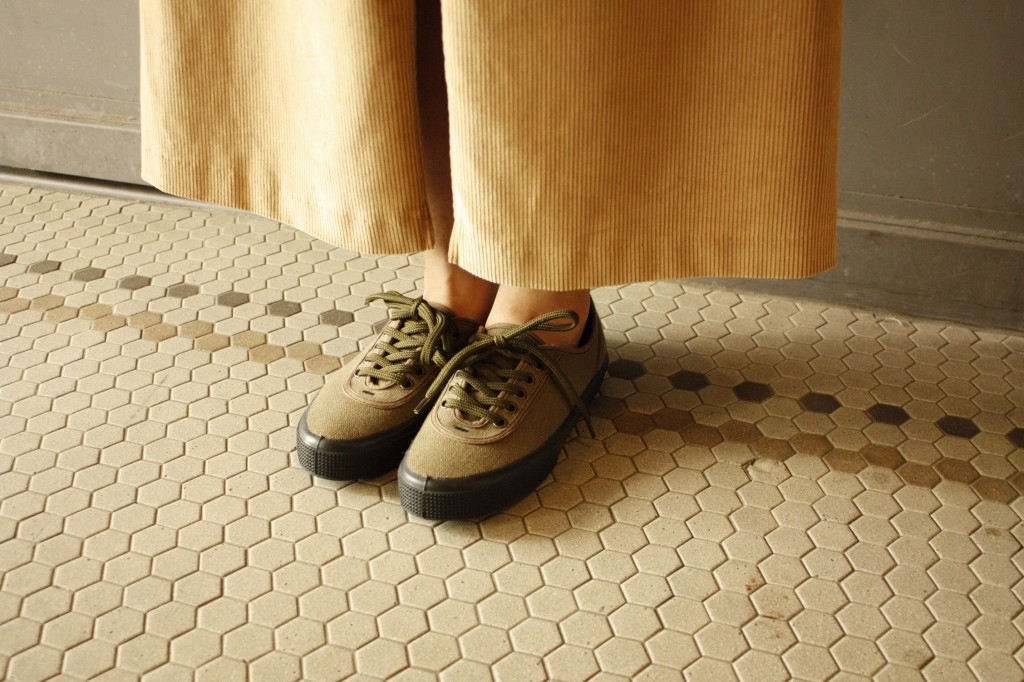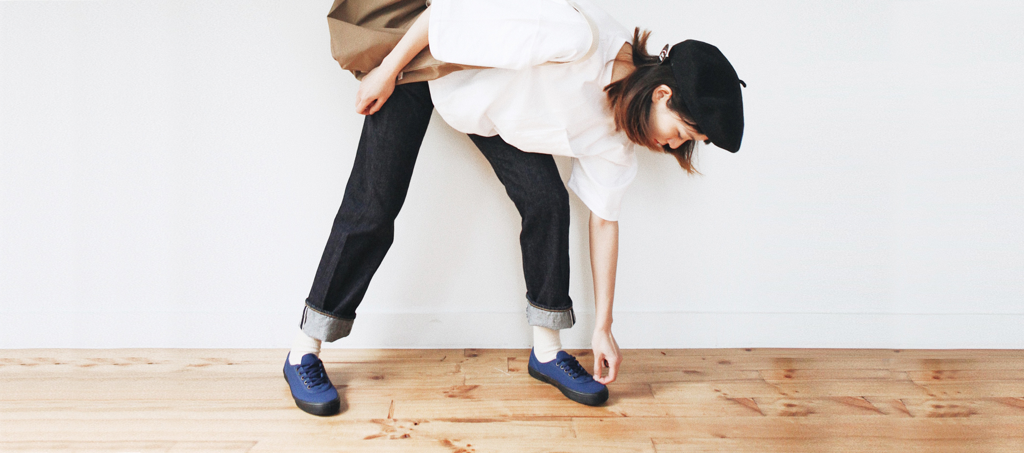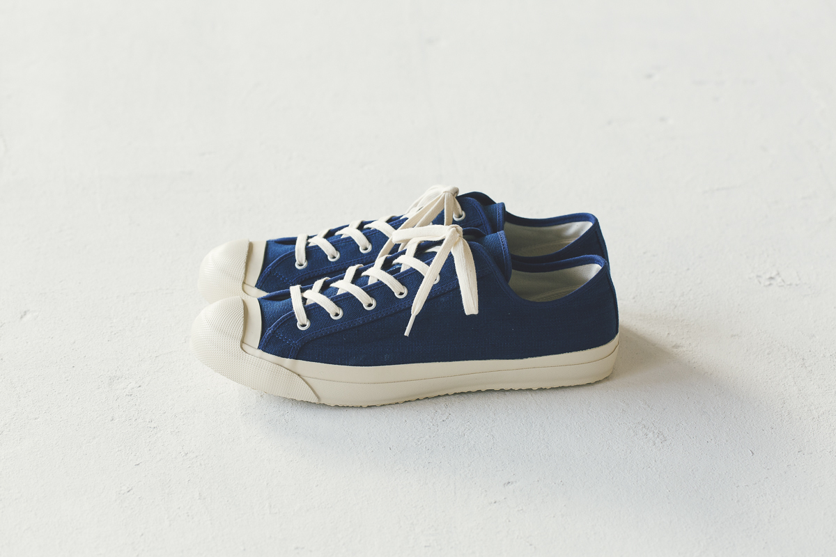 首先為各位介紹來自日本福岡的帆布鞋品牌DOEK,布料使用福岡縣久留米市所生產的久留米絣,久留米織法為日本非常具有代表性的傳統工藝文化之一,全程手工編織及藍染層層上色,原色布料因未經染色,布料會比靛藍色款較有些許份量,除了布料的堅持更是細心的將鞋子邊緣的膠圈向上延伸,側身有如厚底鞋般,不僅整體更有分量視覺效果也拉長了腳型,還能減少鞋子因蹲姿關節處布料易磨損的問題。