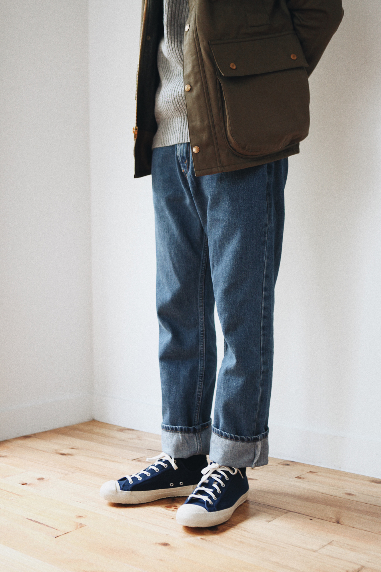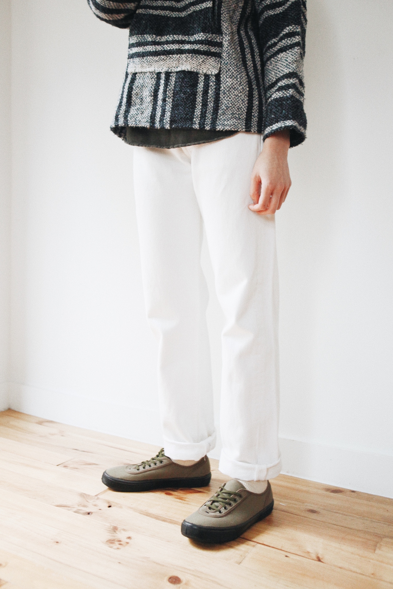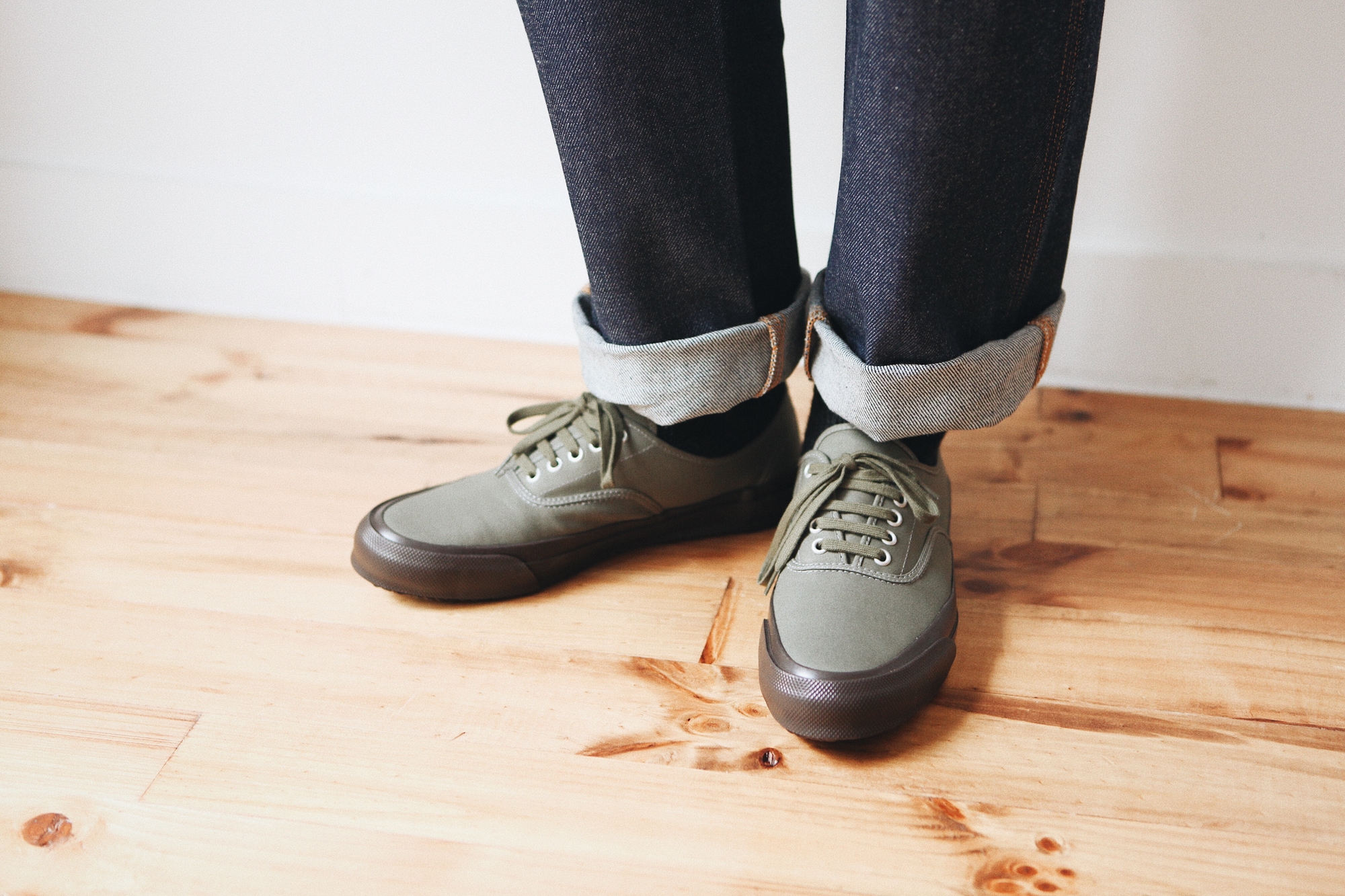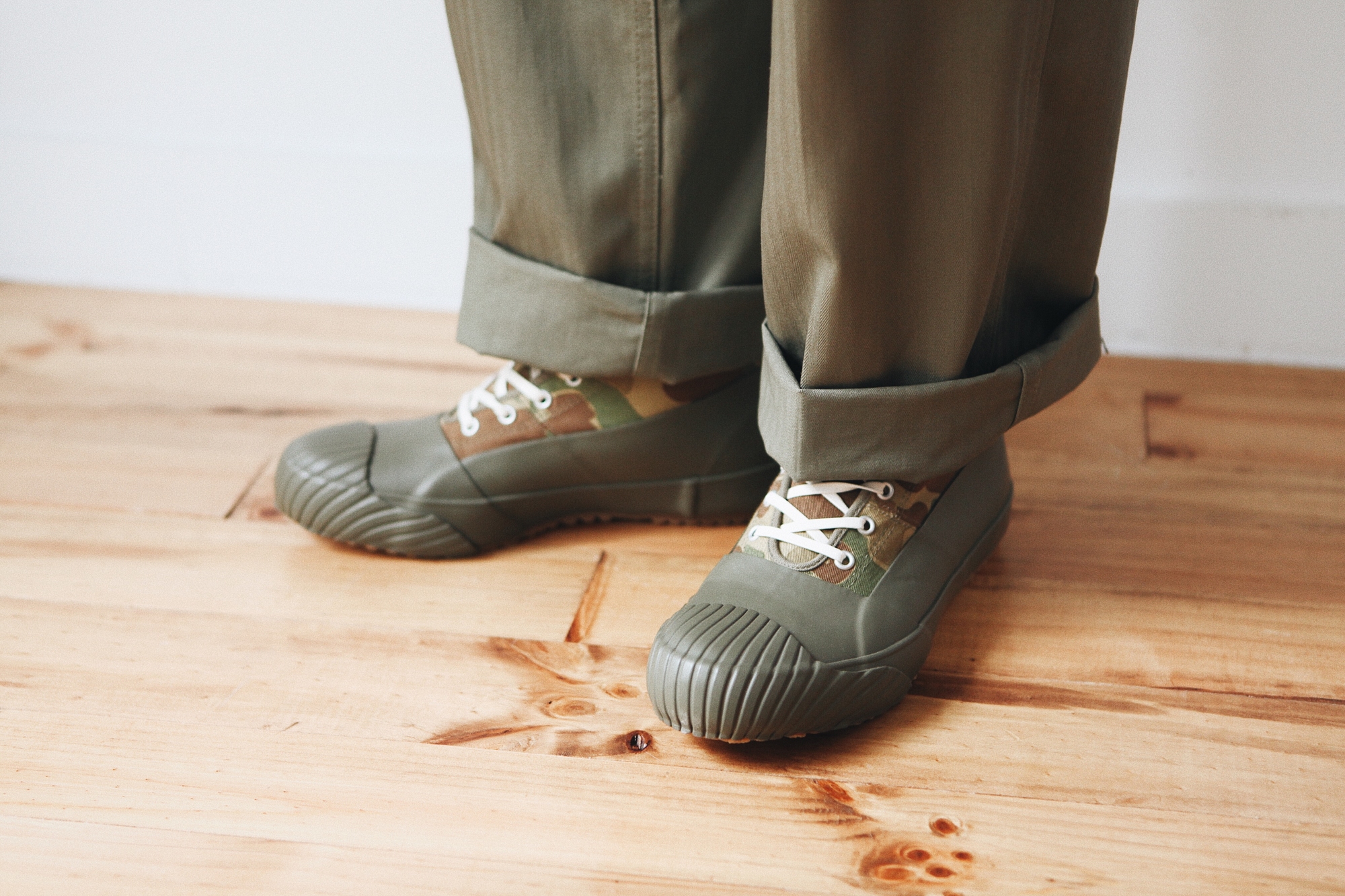 首先為各位介紹來自日本福岡的帆布鞋品牌DOEK,布料使用福岡縣久留米市所生產的久留米絣,久留米織法為日本非常具有代表性的傳統工藝文化之一,全程手工編織及藍染層層上色,原色布料因未經染色,布料會比靛藍色款較有些許份量,除了布料的堅持更是細心的將鞋子邊緣的膠圈向上延伸,側身有如厚底鞋般,不僅整體更有分量視覺效果也拉長了腳型,還能減少鞋子因蹲姿關節處布料易磨損的問題。