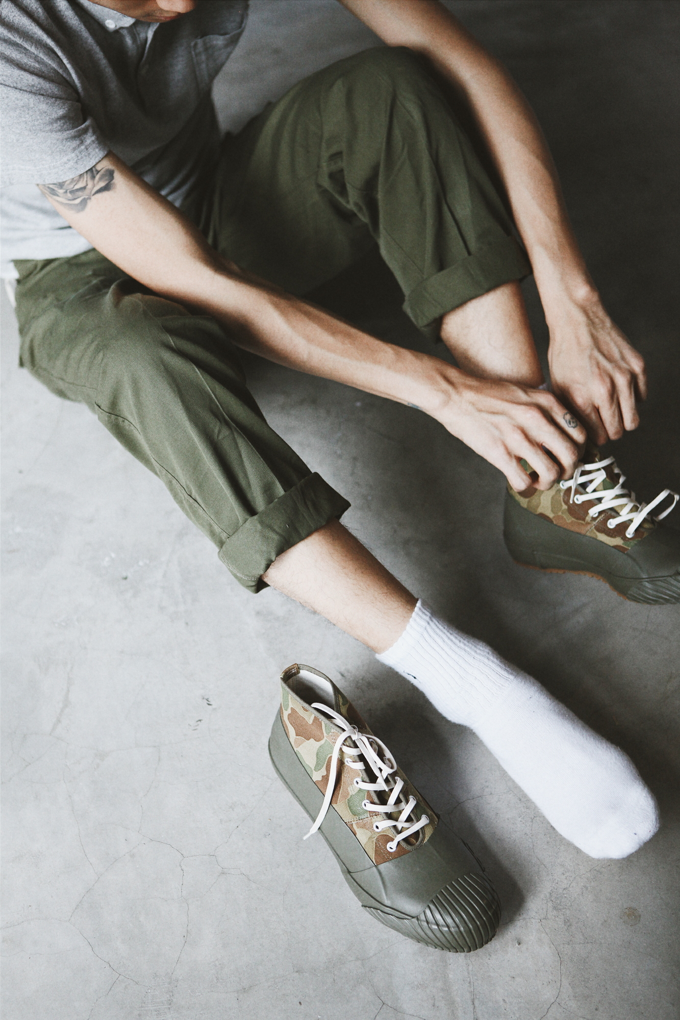 綠色的帽子、綠色的上衣、綠色的軍褲、綠色的襪子,就倒是不多見軍綠色的鞋子,要不要來一雙呢?(我不會說每個人都要擁有一雙軍綠色帆布鞋這種話的)。大地色一直是能組合的非常有層次的配色且也非常好上手,在秋冬有翩翩的氣質,入春後便是活力十足充滿朝氣噢!