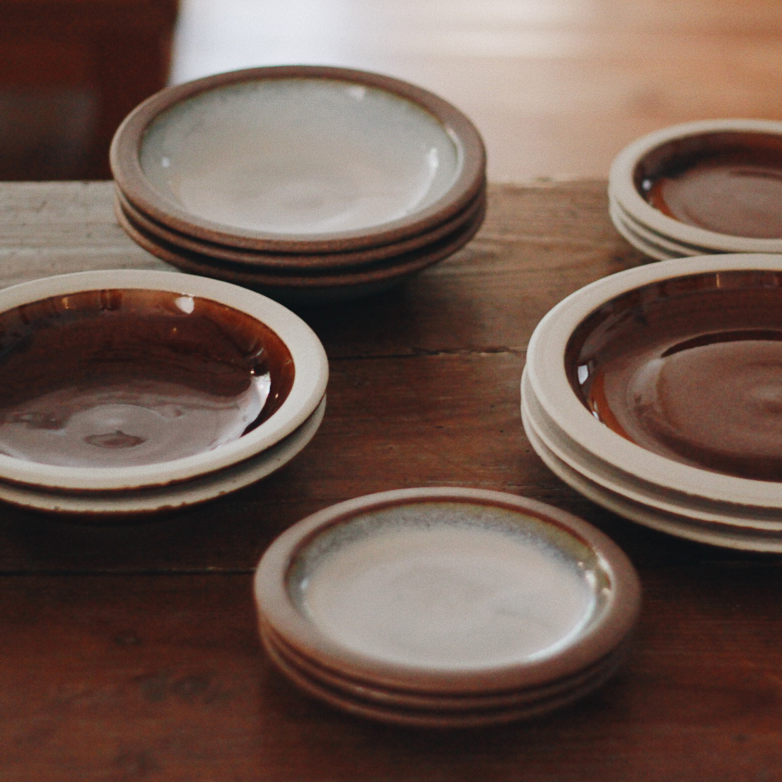 為美濃燒陶器,邊緣為砂礫手感豐富,盤身與盤面則為光滑的渲染藍色與咖啡色澤,兩種顏色與尺寸可以選擇,從小點心到大份量主食都能承裝!