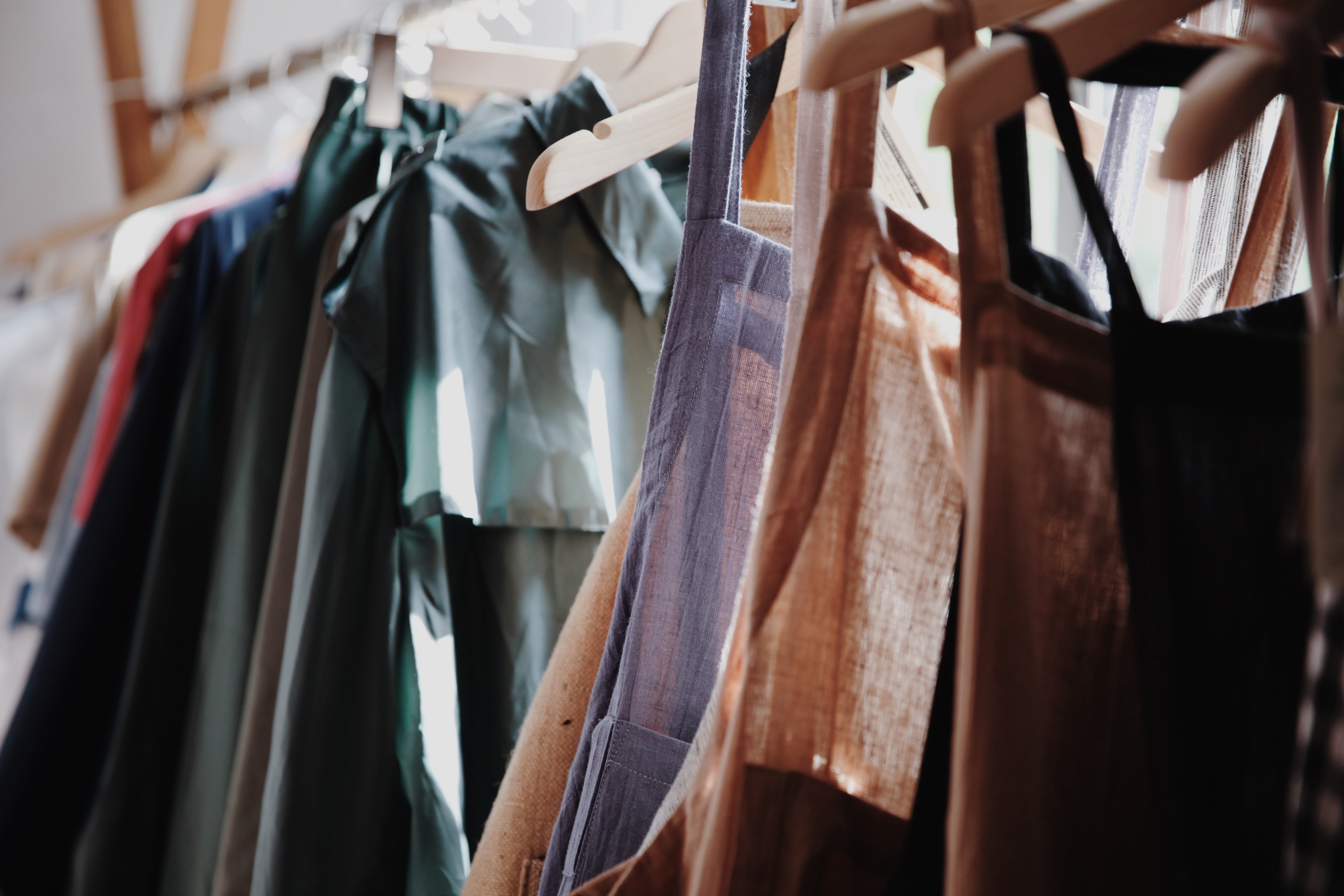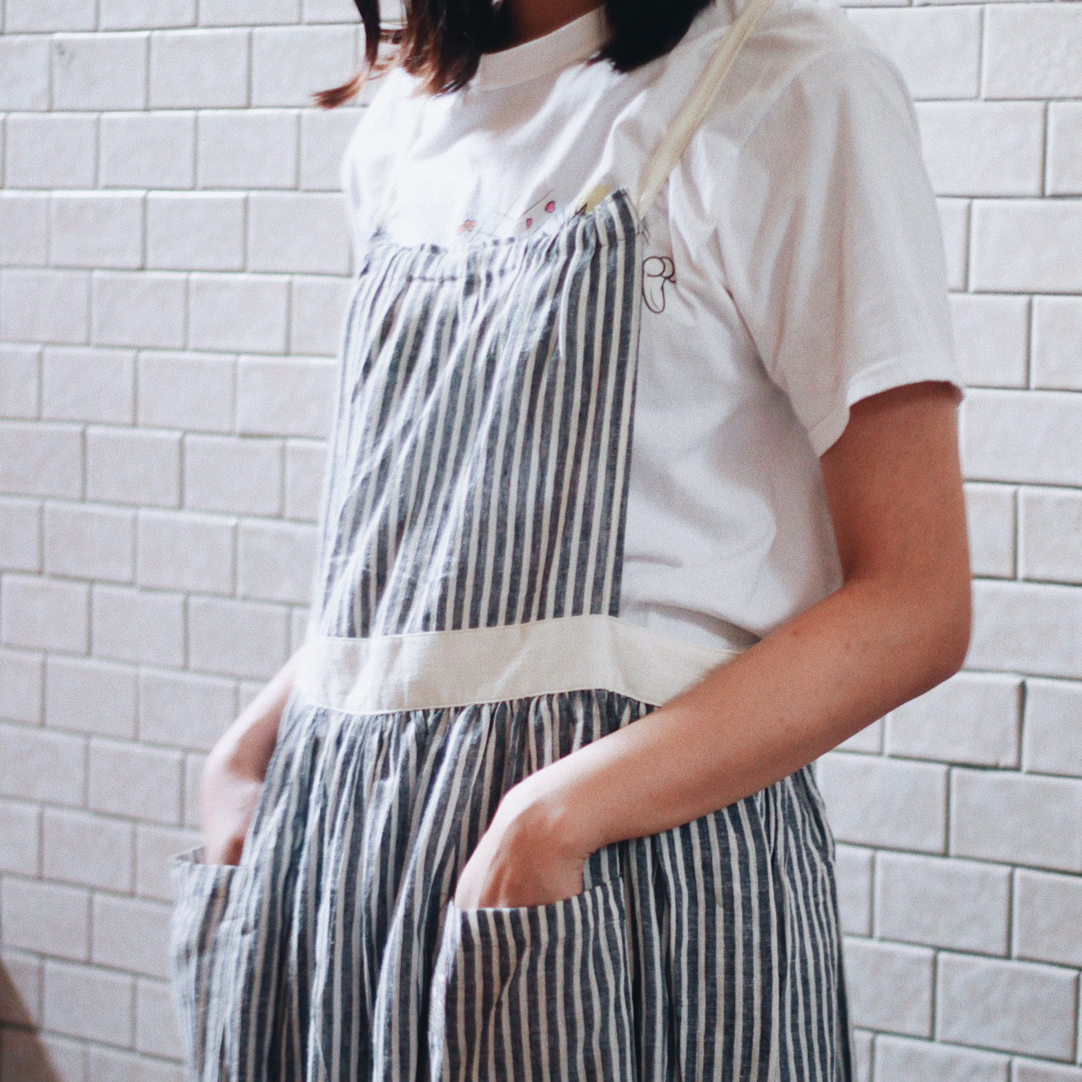 從雙肩帶、繞頸式、綁帶,到扣式圍裙,材質也從輕薄的棉麻到硬挺的黃麻料,也有多款顏色可選擇,能根據下廚或工作時的需求與喜好做挑選哦。