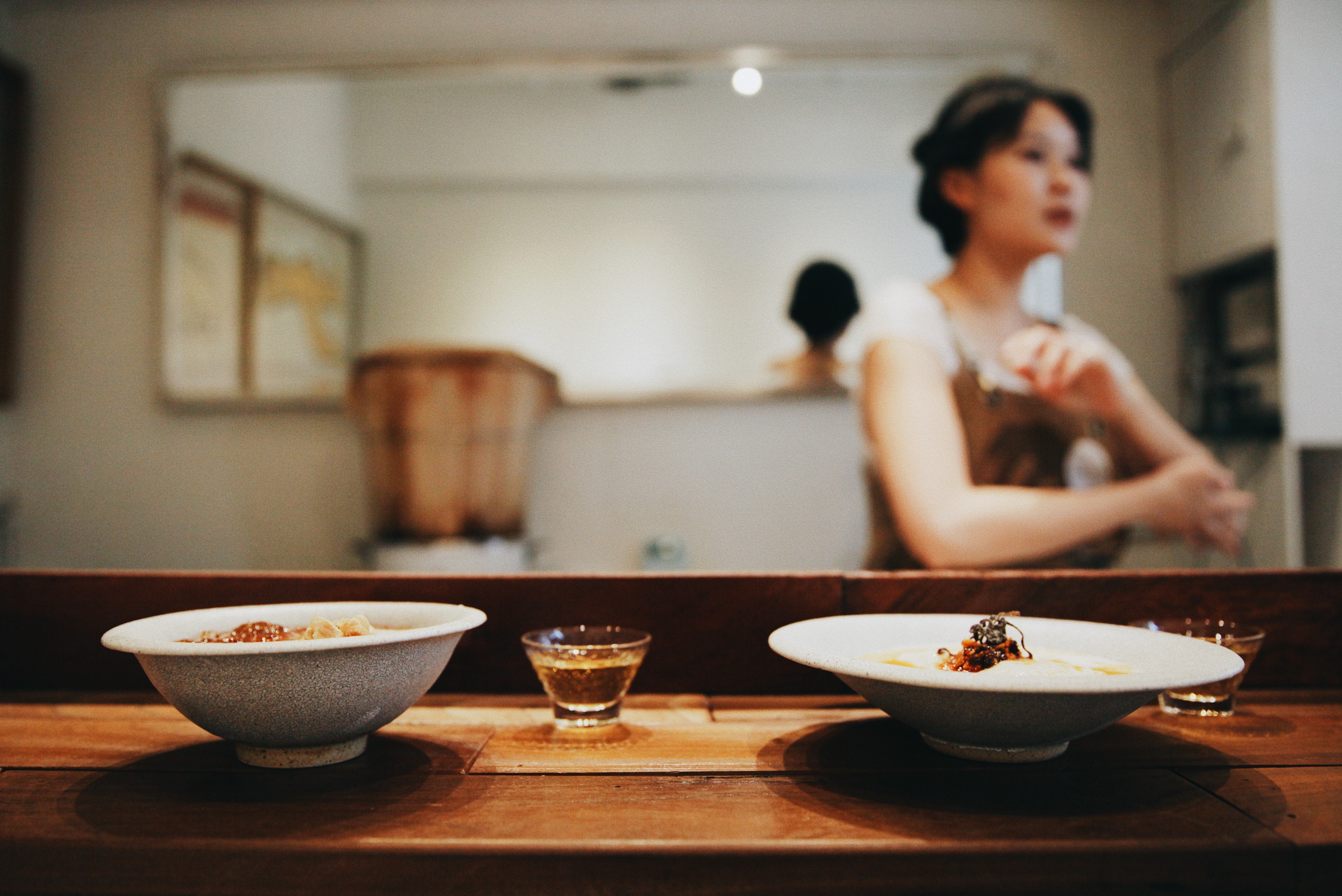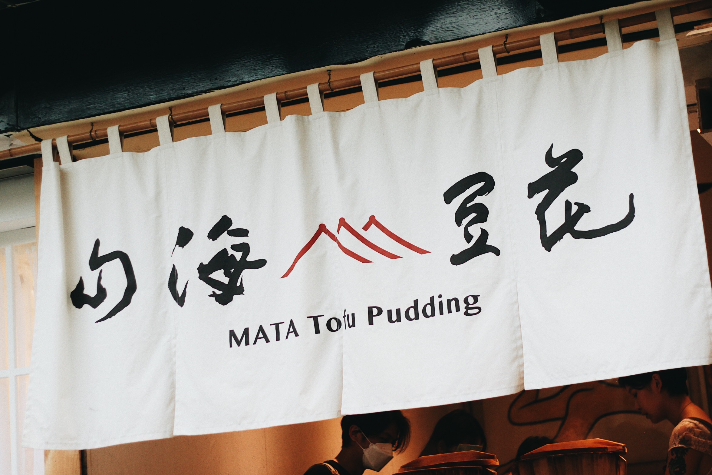 捷運中山站一帶日漸成為大家假日出門悠晃的好去處,在人來人往的小巷裡發現一家新面孔,門口掛著大大的招牌布簾,以毛筆字寫著簡單有力的四個字「山海豆花」,從遠方就能瞧見擺在布簾下的白色電鍋與飄散著熱氣的原木桶,走近後發現店內除了有立食區外,在入口旁設置了三個草織坐墊,能愜意地坐著享用手中那碗豆花、吹著徐徐微風,看著巷尾的夕陽餘暉。