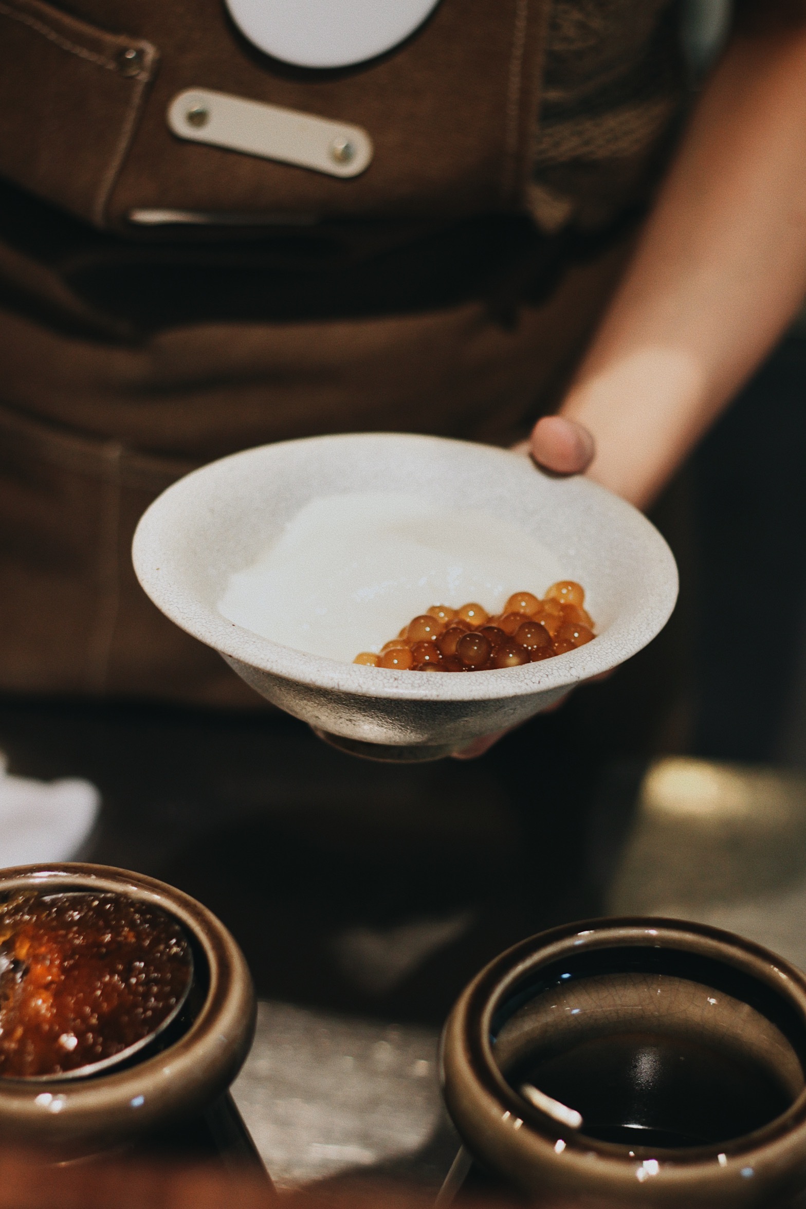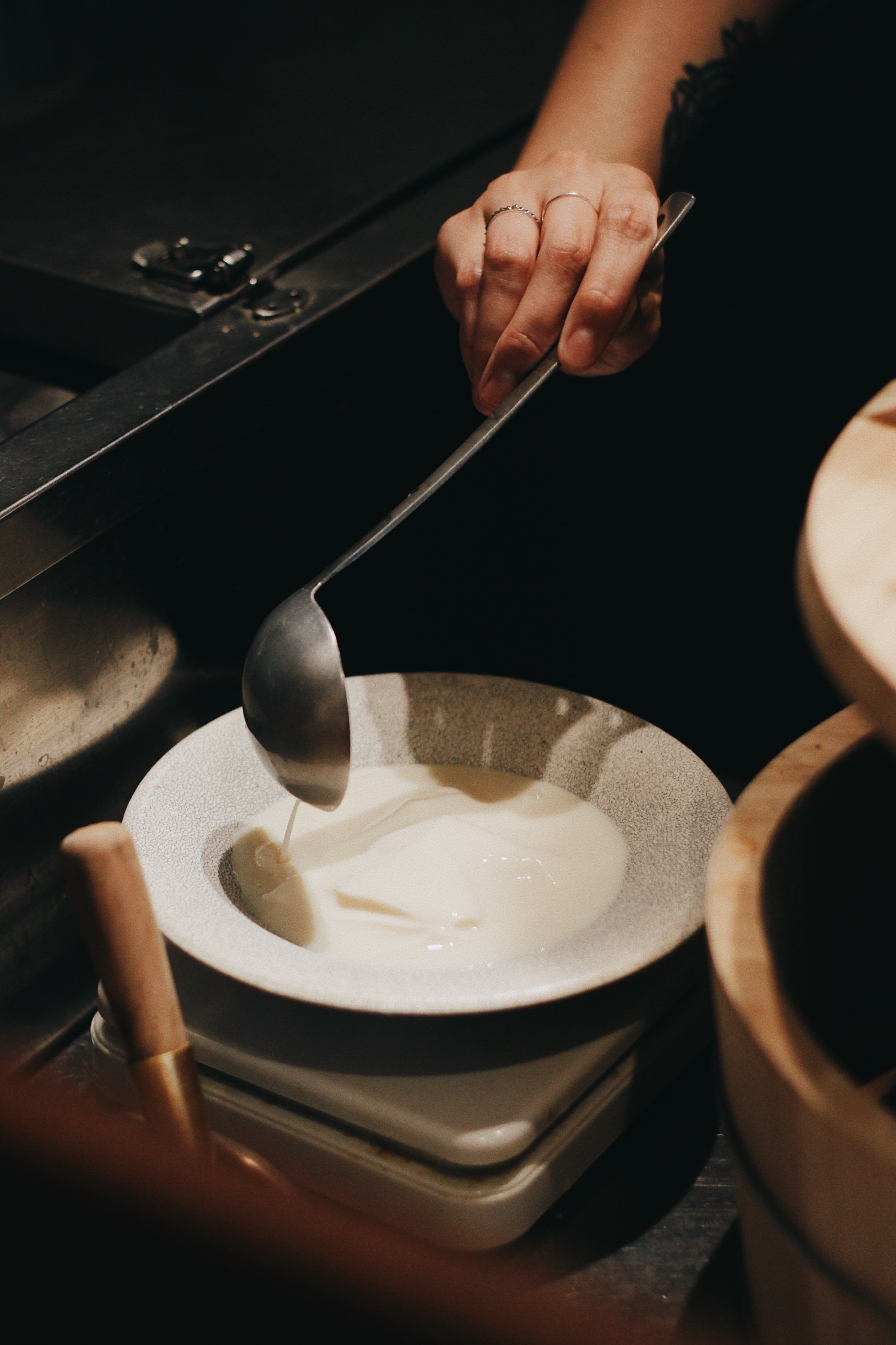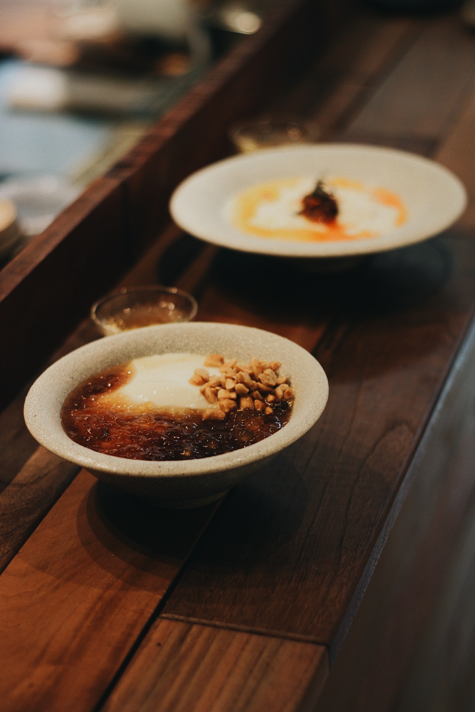 豆花選用黃豆中蛋白質含量最高、來自台南的10號豆子,將取自大自然的食材們創造出一碗純粹溫暖的甜品。