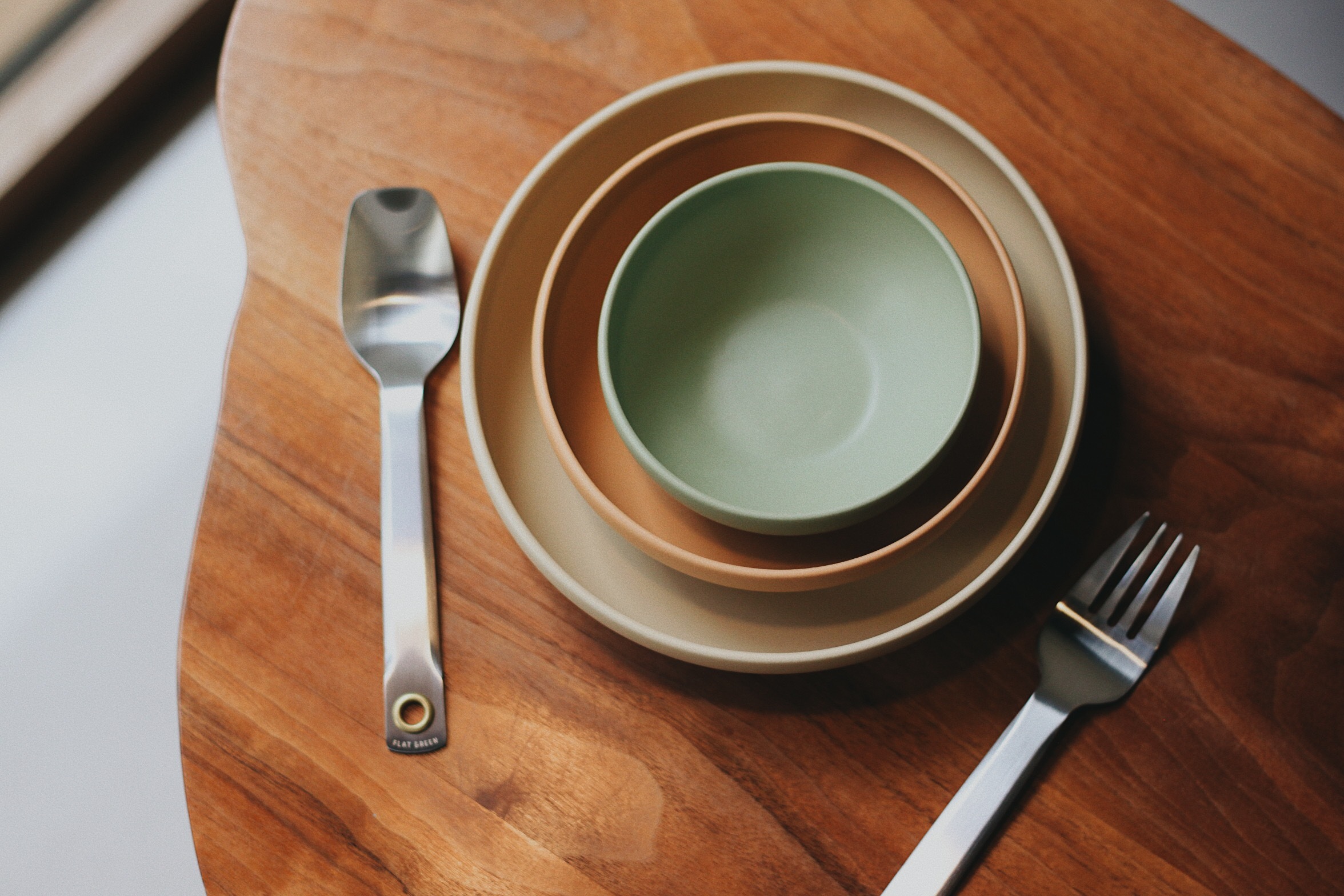 搭配日本服飾品牌 FreshService 所推出的不鏽鋼餐具,是由日本新潟縣的金屬工藝之都燕三条生產而成,燕市是日本最大的餐具產地,有著優異的技術及品質,恰好的尺寸與可堆疊收納的外型更便於收納或攜出使用,日常用餐或露營野餐都能派上用場。
