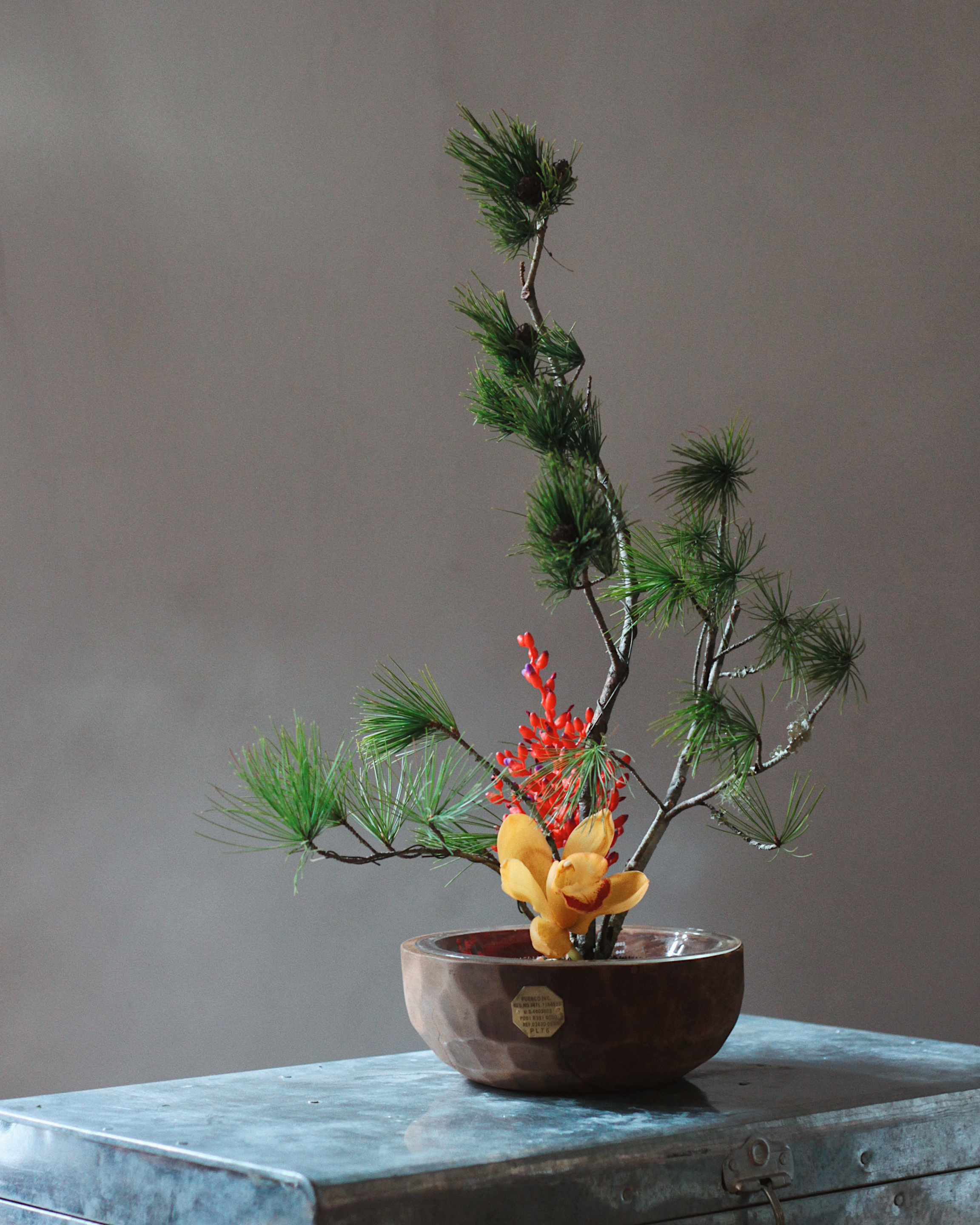 一月花材:五葉松、虎頭蘭、珊瑚鳳梨