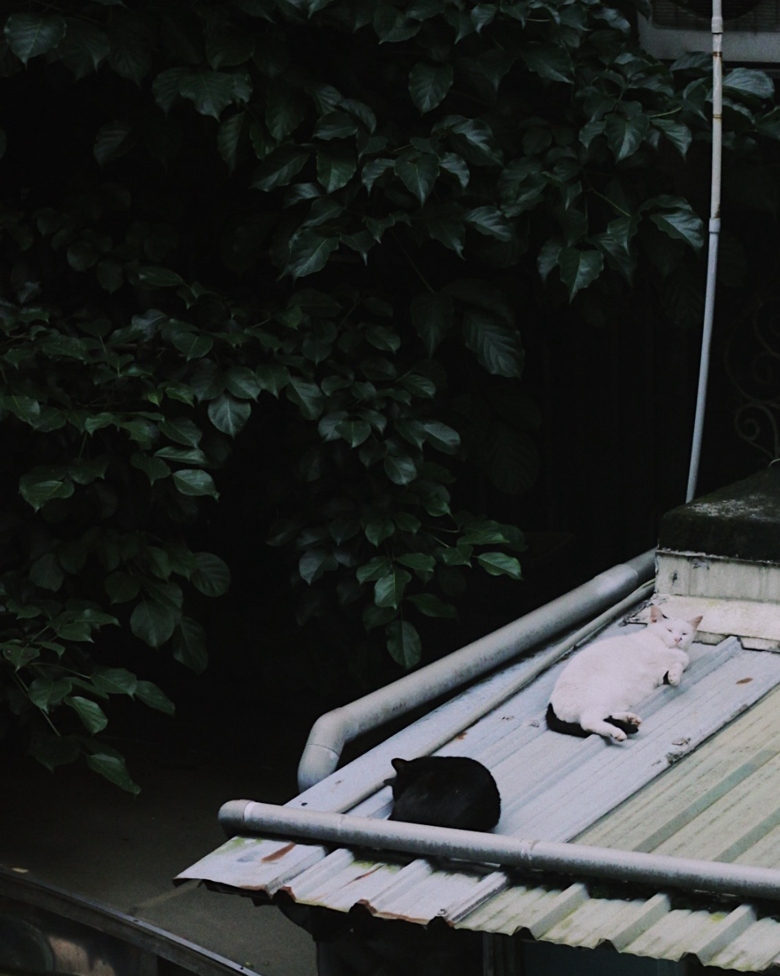 工作室旁邊巷子的屋頂也是貓咪們時常窩著的地方